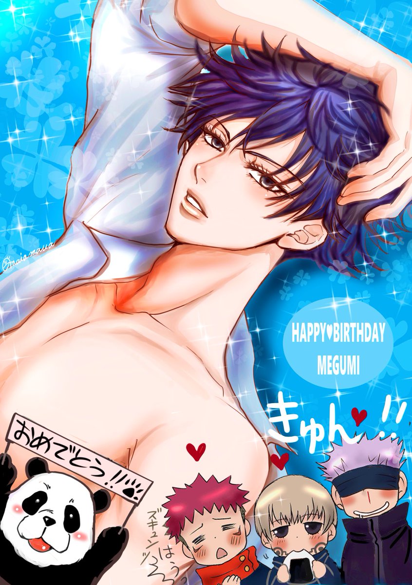 #伏黒恵誕生祭2021 #伏黒恵生誕祭2021 #呪術廻戦ファンアート お誕生日おめでとうイラスト 最後にみんなが求めてくださったセクシーめぐめぐで締めます❤️✨間に合いました😆🙏✨ 一部使い回し🙇♀️ 大事なところは パンダ🐼先輩にお任せ!