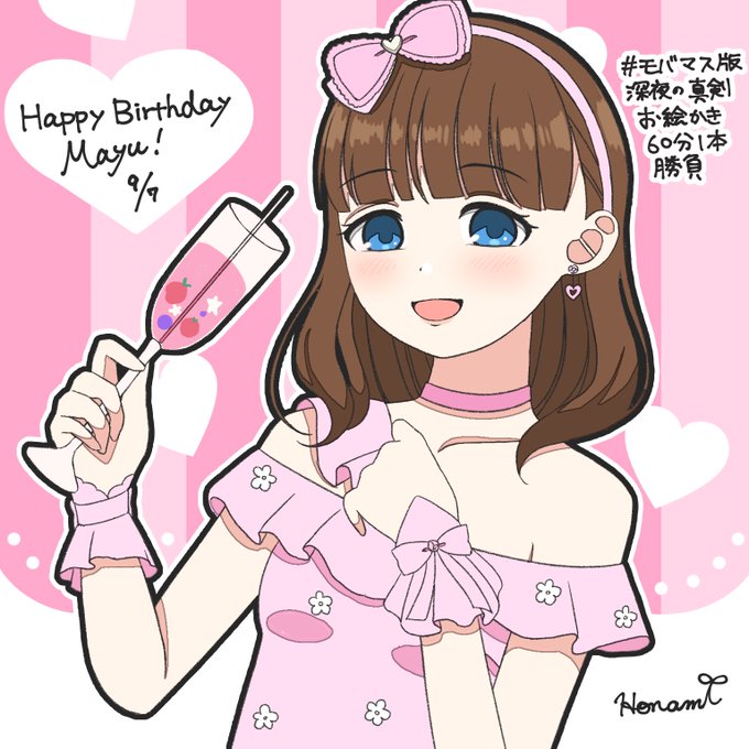 まゆお誕生日おめでとう!! 本当に所作や発言のひとつひとつが可愛くて憧れています! これからも応援させていただきます🎀 あとアニバ限定欲しいのでよろしくお願いします #佐久間まゆ生誕祭2021 #モバマス版深夜の真剣お絵かき60分1本勝負