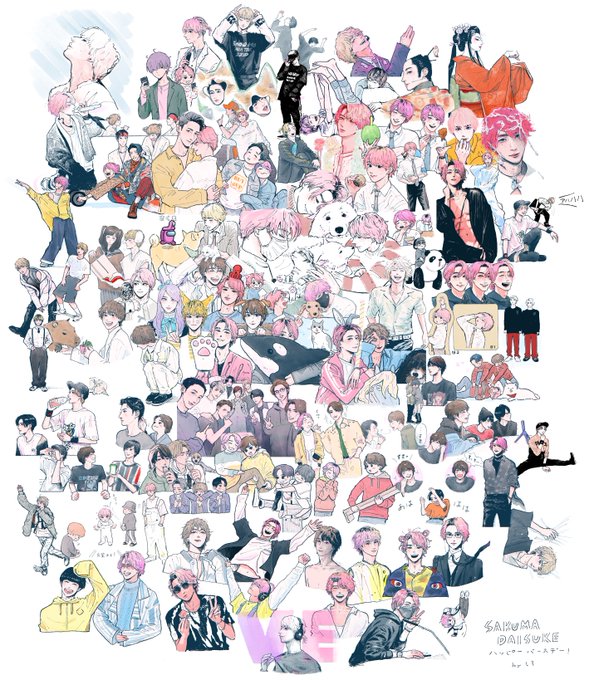 誕生日カウントダウンまとめ🌸 100枚描く!という目標で、ただただ好きな佐久間くんを描きました! 真ん中は動物とさくまシリーズ!動物番組レギュラー出演がいつか決まったらなと願いながら描きました🐶 お誕生日おめでと〜〜!! #佐久間大介誕生祭 #佐久間大介誕生祭2022