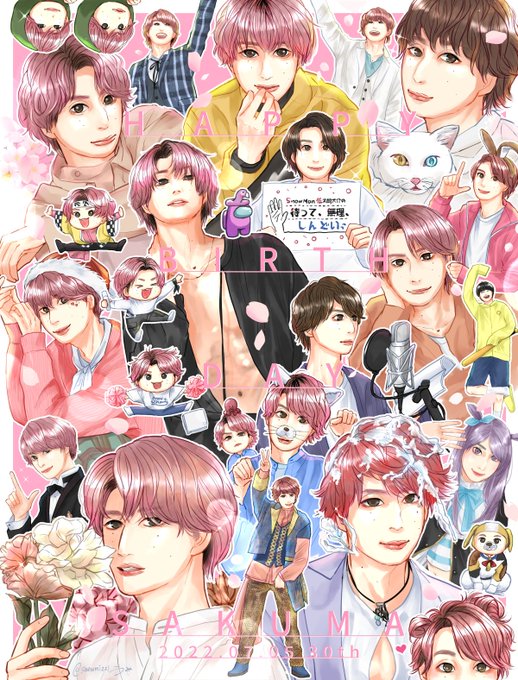 誕生日カウントダウンまとめ🌸 100枚描く!という目標で、ただただ好きな佐久間くんを描きました! 真ん中は動物とさくまシリーズ!動物番組レギュラー出演がいつか決まったらなと願いながら描きました🐶 お誕生日おめでと〜〜!! #佐久間大介誕生祭 #佐久間大介誕生祭2022