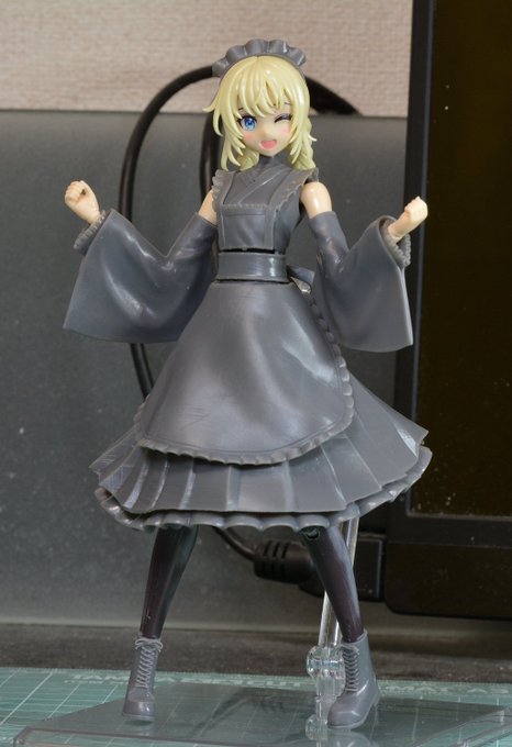 ちなみに自作の和服メイド衣装は全っ然間に合わなかったけど全パーツ出力し終わったので組んでみた スカートの広がりなんかは分からないながらもそれっぽく造形できたかな〜〜 #佐伯リツカ生誕祭2023 #創彩少女庭園
