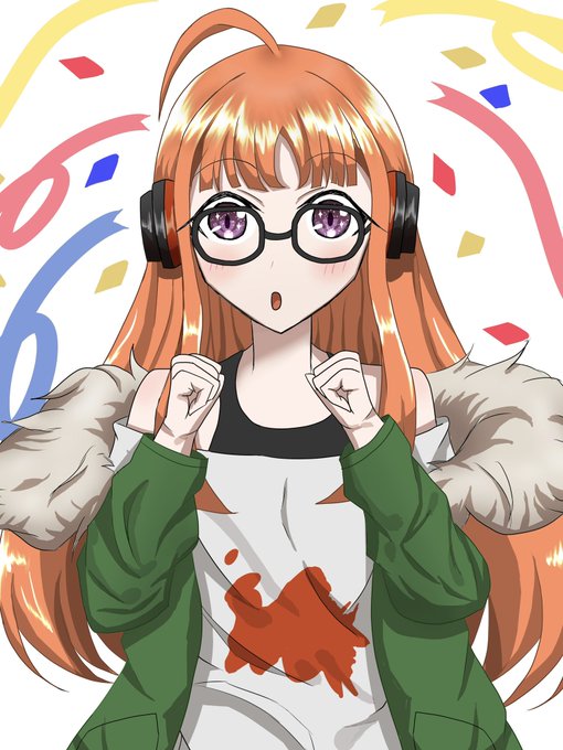 2月19日はペルソナ5に登場する 佐倉双葉の誕生日です🎂 ということでイラスト描いてみた! (昨日必死のパッチで描きました😆) 初めて描いた眼鏡っ娘👓 むずかちー🙀 人見知り発動時のお面に座ってます。 #佐倉双葉生誕祭2023 #佐倉双葉誕生祭2023 #イラスト