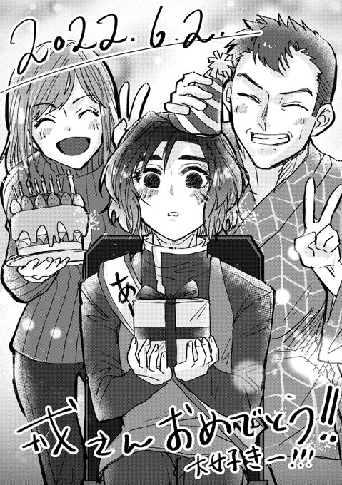 戒さんお誕生日おめでとうございます! お手伝いさん時代に千堂院パパママにお祝いしてもらっててくれー!!!頼むー!!!! 大好きー!!! #キミガシネ #佐藤戒誕生祭2022 #佐藤戒生誕祭2022