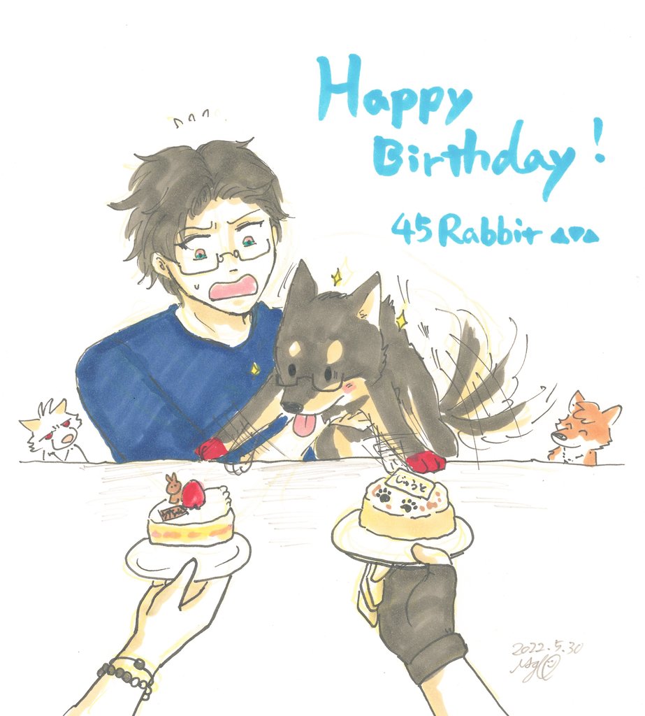 ※擬獣化🐕ハマ ※犬ハマと人間ハマがいっしょにいる 🐇<違う違う、犬用ケーキはあっち!!! #入間銃兎生誕祭2022 #入間銃兎誕生祭2022 お誕生日おめでとう🎉 あなたの幸せを願わずにいられない