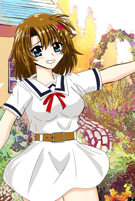 過去絵を直しただけなんだけど、結局間に合わなくて夏制服を超雑に💦 いつか完成させる…… 『流石にこの歳でこの制服はキツイんやないかなぁ?どこ需要なん?』 #八神はやて誕生祭2022 #八神はやて生誕祭2022