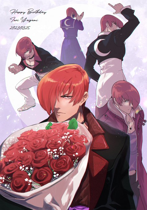 I don't have much time to draw these days so I ordered a commission for him. Happy birthday Iori! 🎂 #八神庵生誕祭2023