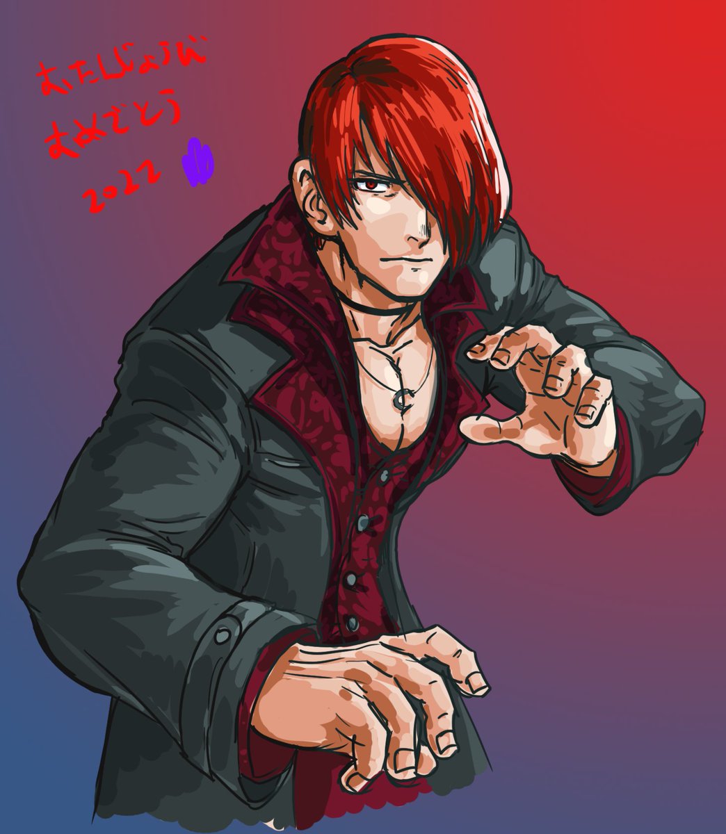 #八神庵誕生祭2022 #KOF #格ゲーキャラ描こうぜ 描けた~(。ノuωu)ノ間に合ったー。改めましてお誕生日おめでとう❗️庵!15では、(京よりも)よくお世話になっております…🤭 服装悩んで学ランっていうww