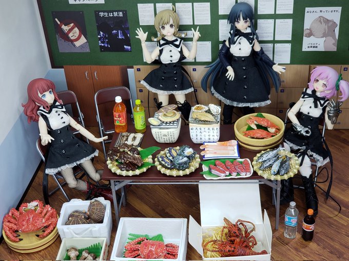 #六角汐里誕生祭2022 #六角汐里生誕祭2022 しおりん♪ お誕生日おめでとうございます 百合ヶ丘メンバー総出でパーティー を楽しんでいる裏側では... こちらは初期ドールメンバーだけで 海鮮パーティーのようです😅 #アサルトリリィドール部 #アサルトリリィ