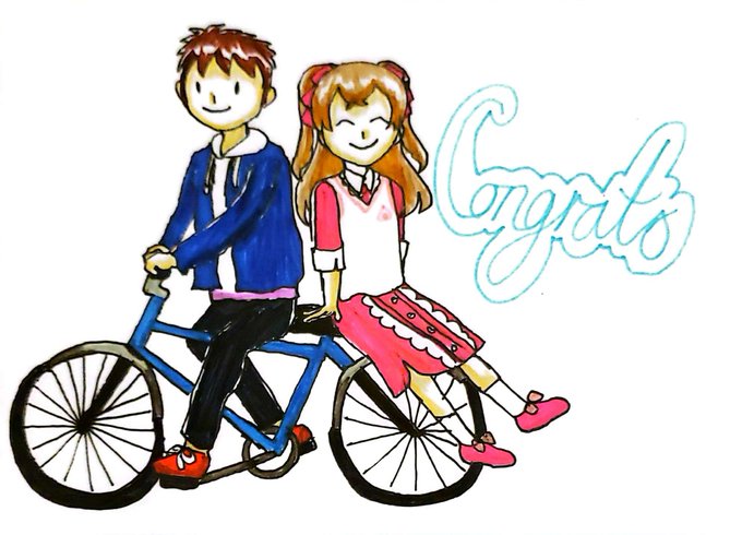 「Congrats!!」のMVからインスピレーションを取って、自転車を乗っている拓海くんを描きました!ゆいさんも一緒にいる~ 內田雄馬さん、お誕生日おめでとう! #precure #デパプリ #deliciouspartyprecure #落書き #イラスト #プリキュア好きさんと繋がりたい #内田雄馬誕生祭2022