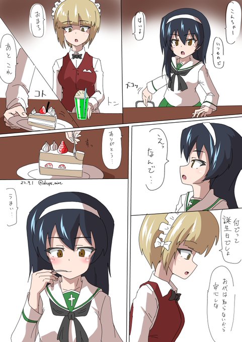 そど子:…オメデト 麻子:ん? そど子:オメデトウ 麻子:なんだ。聞こえんな そど子:だ〜か〜ら〜誕生日おめでとうって言ってるでしょ!!ほらケーキ用意したんだから!! 麻子:おぉ…ありがとなそど子 そど子:そど子言うなヘボ!! 麻子:ヘボ? #冷泉麻子生誕祭 #冷泉麻子生誕祭2022