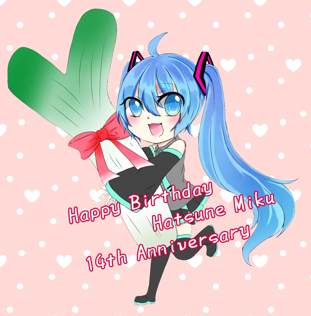 ネギめっちゃ雑なったけど…😭😭😭 改めてミクちゃん、おめでとう👏 #初音ミク #初音ミク14周年 #初音ミク14thAnniversary #初音ミク生誕祭 #初音ミク誕生祭2020 #初音ミクイラスト