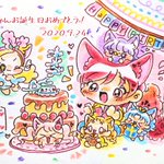 お誕生日おめでとう🎊🎉🎂🎁 過去絵ですがレッツラバースデー🎉 #キュアショコラ生誕祭2021 #キュアショコラ誕生祭2021 #剣城あきら生誕祭2021 #剣城あきら誕生祭2021 #プリキュア #イラスト