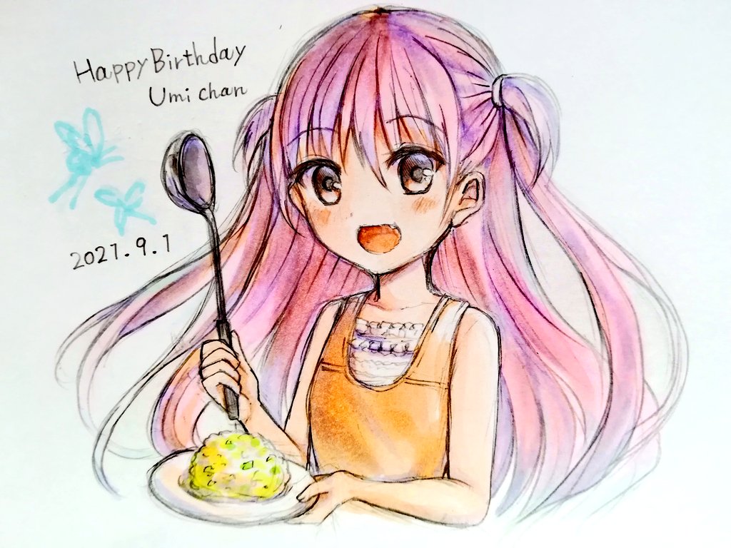 うみちゃんお誕生日おめでとう! うみちゃんの努力の物語には泣かされまくった あの夏を振り返りながらおとーさんおかーさんと幸せに過ごしてくれ! 過去絵でお祝い_(:3」 ∠ )_ #加藤うみ生誕祭2021