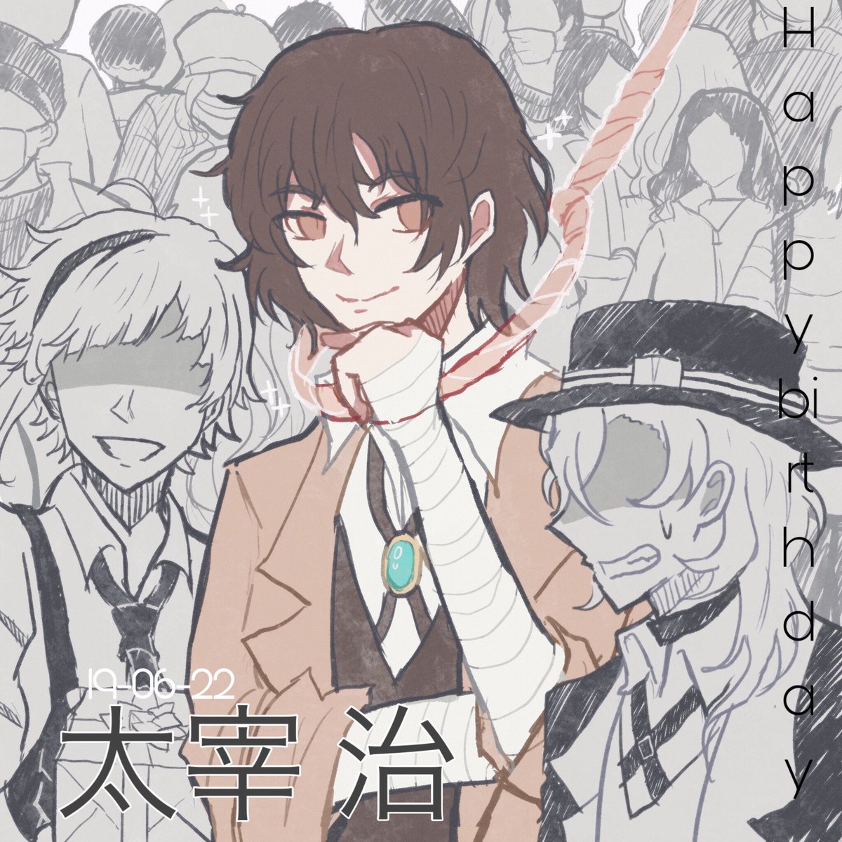 いちいちタグが面白いから全部付けてしまう(笑) 太宰さんおめでとう!素敵な一年に。 #太宰治生誕祭2022 #包帯無駄遣い装置誕生祭2022 #歴代最年少幹部生誕祭2022 #文スト #BSD #イラスト #イラスト好きな人と繋がりたい