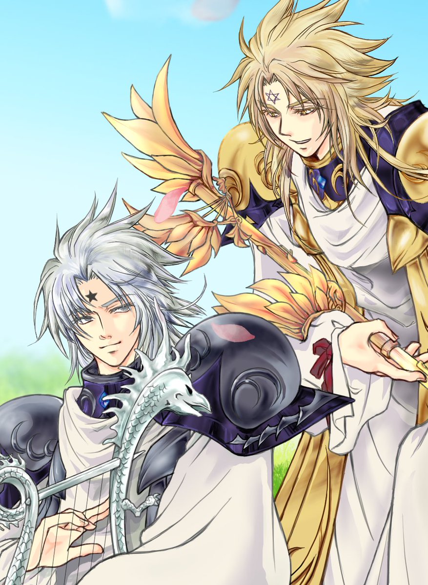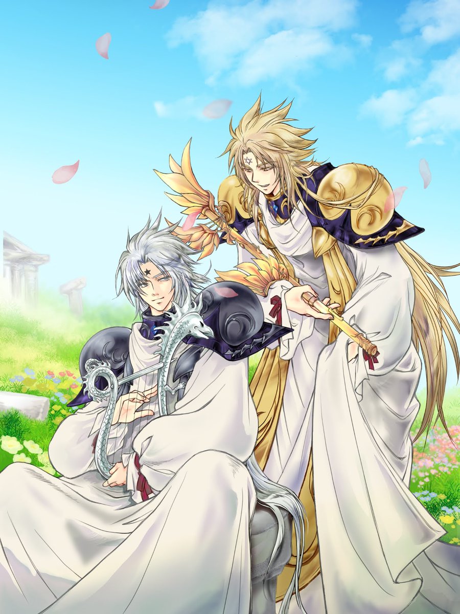 遅れましたが改めて双子神はぴば! 背景は思い切りライコスを参考にしております…エリシオンのイメージ完璧すぎて自分の案が浮かばなくなった😅 #双子神生誕祭2022 #双子神タナトス・ヒュプノス生誕祭2022
