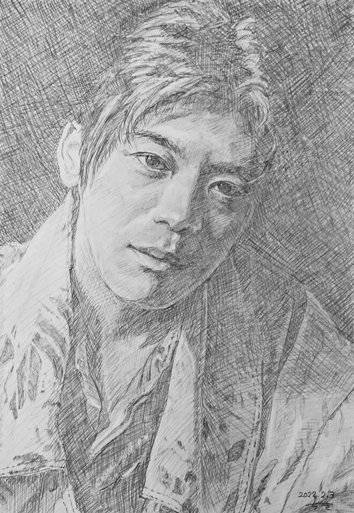 #古川慎誕生祭2022 過去の雑誌の模写絵2枚 再掲でお祝い グラビア写真のかっこよさにやられて本格的に描いた最初の一枚と やっぱりかっこよさにひゅっとなって描かずにいられなかった比較的最近の一枚 フィルタの向こう側 切り取られた一瞬の雰囲気あるお姿が目の保養