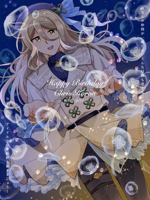 お誕生日おめでとうございます。 今年から推させていただいている新人Pですが、美・キュート・おもしろを沢山ご提供いただき、もうクリスさんの虜です。 SRイラストを参考にしたら構図が全く同じになってしまいパクリみたいなお祝い絵ですみません。今後も応援させて下さい。 #古論クリス生誕祭2022