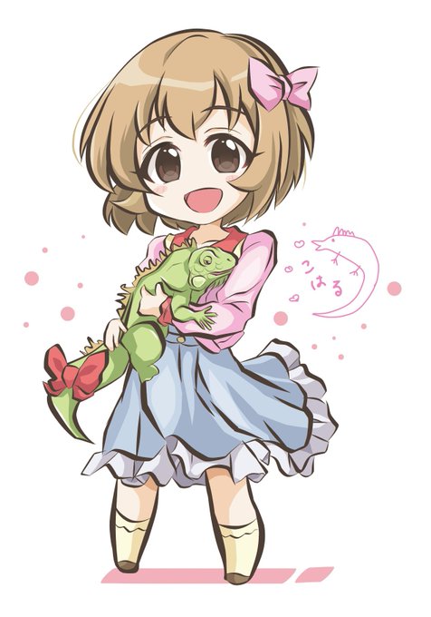 古賀小春さんお誕生日おめでとうございます。 ふわっと柔らかい物腰で動物もお手の物なキュートさん。 小春ちゃんがいるカフェはメイドカフェ?え、イグアナカフェ? #モバマス版深夜の真剣お絵かき60分1本勝負 #古賀小春生誕祭2022
