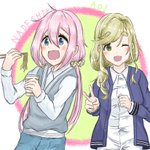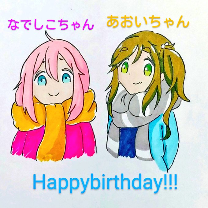 なでしこちゃん&あおいちゃん 🎉🎂Happy Birthday 🎂🎉 (´◔ᗜ◔)うそやで〜www #ゆるキャン #各務原なでしこ生誕祭2022 #犬山あおい生誕祭2022 #イラスト好きな人と繋がりたい