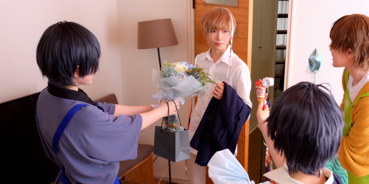💧🌈 COSPLAY/QUELL 🌈💧 ※衣装捏造アリ 「「「柊羽~!お誕生日おめでとう~🎉」」」 和泉柊羽:ひねこ 堀宮英知:おまむさん 久我壱星:雑食さん 久我壱流:燈夜さん Photo:ミスリルさん #和泉柊羽生誕祭2023