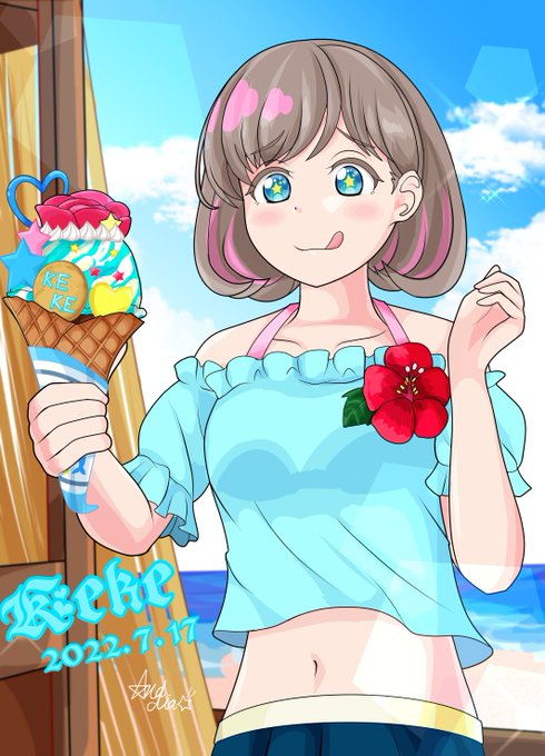 「まさかこの海の家でこんなアイスが食べられるなんて、夢のようデ〜ス!!( ᵒ̴̷͈ ⌑ ᵒ̴̶̷͈ )」 可可ちゃん、Happy birthday! 久しぶりのイラストでお祝いします✨ #唐可可生誕祭2022 #唐可可誕生祭2022 #lovelive #Liella