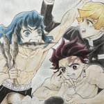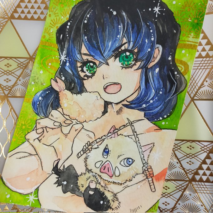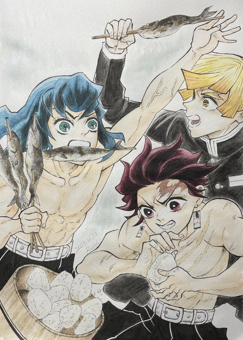 同じ釜の飯を食べ 競い合い励まし合い 楽しいことも辛いことも 一緒に分かち合える 兄弟みたいな仲間と これからもワチャワチャしてほしい 🎉お誕生日おめでとう🐗✨ #嘴平伊之助生誕祭2023 #嘴平伊之助誕生祭2023 🖌透明水彩 模写