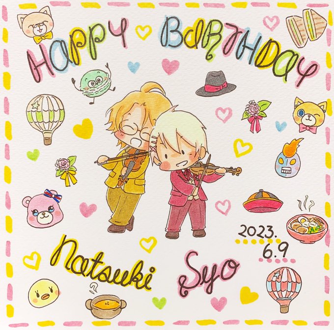 なっちゃん、翔ちゃん!お誕生日おめでとうございます🎻 今日からの1年も、お2人にとって素敵な1年になりますように!素敵なハーモニーを♪ #utapri_syo_BD2023 #utapri_natsuki_BD2023 #来栖翔誕生祭2023 #四ノ宮那月誕生祭2023