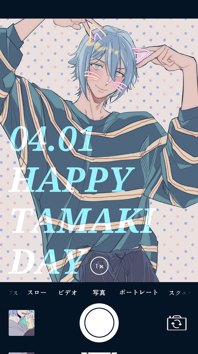 遅くなっちゃったけど、たまきくんお誕生日おめでとう〜‼️4月中は実質ずっと誕生日みたいなもんだからたくさんプリン食べてお祝いしようね(🍮•᎑•🍮)🩵💜 #四葉環生誕祭2023 #四葉環誕生祭2023
