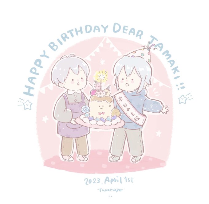 遅くなっちゃったけど、たまきくんお誕生日おめでとう〜‼️4月中は実質ずっと誕生日みたいなもんだからたくさんプリン食べてお祝いしようね(🍮•᎑•🍮)🩵💜 #四葉環生誕祭2023 #四葉環誕生祭2023