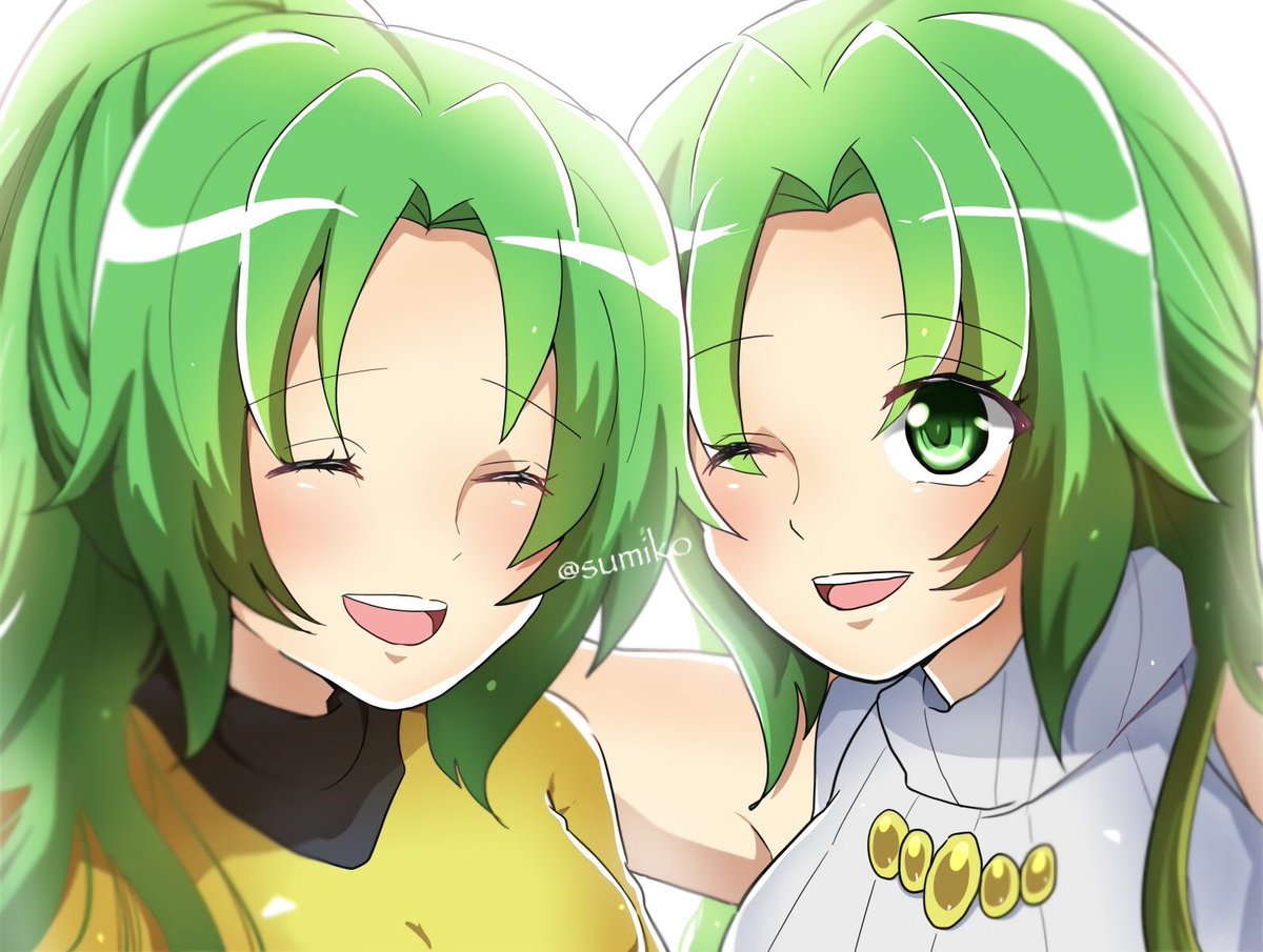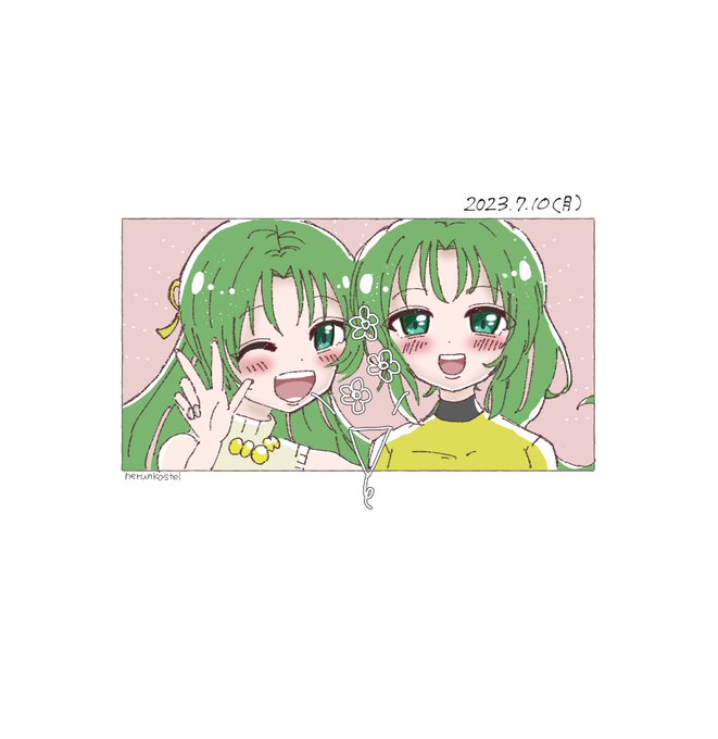 こっちは過去絵☺️! ひぐらしを好きになった小学生のときから推しは変わってません😢🔥🔥 これからもたくさん幸せそうな双子描いていきたいな〜と思っています🌷🌈💚 #ひぐらしFA #園崎姉妹生誕祭2023