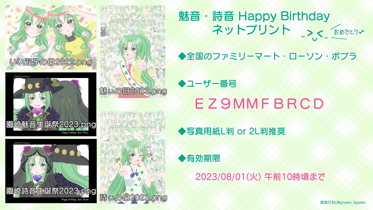💐💚ネットプリント情報💚🎉 魅音と詩音のお誕生日記念に、ふたりのイラストをネップリ登録しました! ファミマ・ローソン・ポプラにて、8/1(火)午前10時頃まで印刷可能です☺️ ※QRコードでの印刷がうまくいかないので、お手数ですがユーザー番号のご入力をお願いいたします🙇 #園崎姉妹生誕祭2023