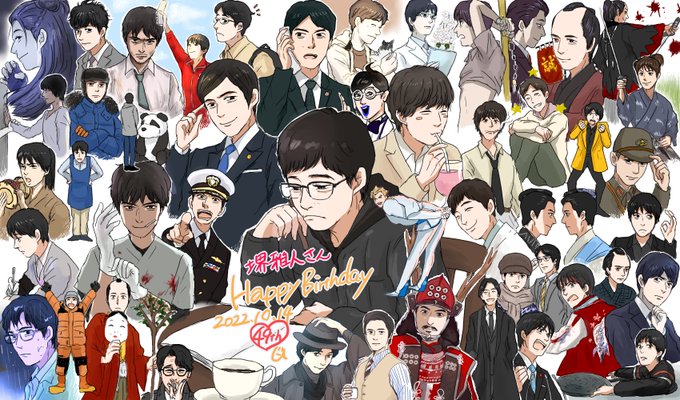 堺さん、お誕生日おめでとうございます🎊🎂🍻 直前にPSBの新CMが解禁になったりコトー出演が決まったりでこちらがプレゼントを頂いた気分です!これからもずっと大好きです☺️ 絵使い回しですみません!49歳にちなんで49人いる…はず #堺雅人誕生祭2022