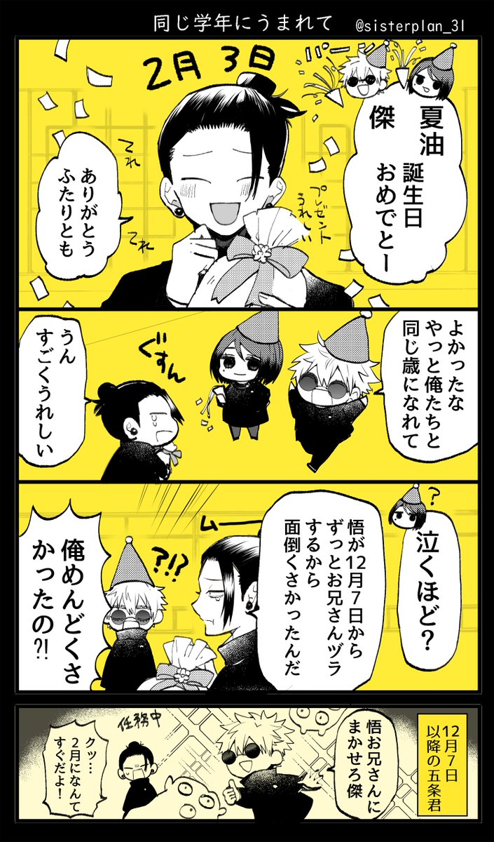 #봄의_시작을_알리는_따스한_여름 #오늘만큼은_진심으로_웃는_날이_되길 #夏油傑誕生祭2023 #夏油傑生誕祭2023 생카 전시 일러스트 협력본도... 올려봅니다... 더 잘 챙겨주지 못해서 미안해 행복한 생일 보내 게토...🥹