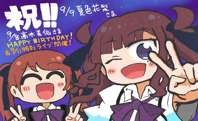 こちらは祝花に添えたイラストを、イベントでお披露目された高木美佑さんの新ツインテ準拠で描き直したものになります。 お2人ともお誕生日おめでとうございますでした😂🎂 #karin_splive #夏色花梨誕生祭2022 #高木美佑生誕祭2022 #毎月6日はTOKYO6の日 #花梨ギャラリー #TOKYO6生放送使用可