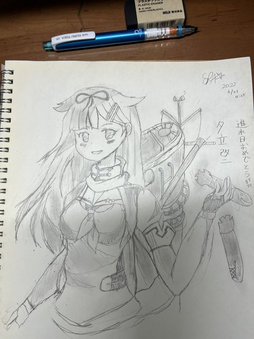まじくそ久々すぎて簡単にしか色置けなかったけど大好きだぜ夕立!!! #夕立進水日 #夕立生誕祭2022 #艦これ版深夜の真剣お絵描き60分一本勝負 #艦これ版真剣お絵描き60分一本勝負_20220621