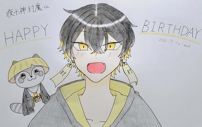 Vtuberで初めて推したのは封魔くん!🦝 これからも頑張ってください! 遅れたけどお誕生日おめでとう🎉 #封魔絵 #夜十神封魔生誕祭2022 #イラスト #イラスト好きな人と繋がりたい #三連休はフォロワーさんが増える