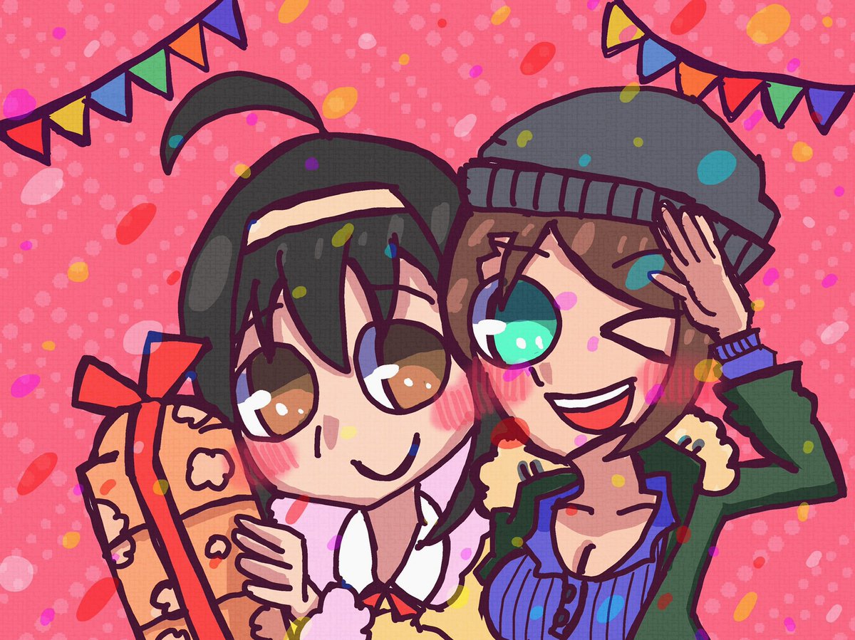 ✨🎁Happy birthday 🎉 ✨ 誕生祭らしい絵を描こうと結局二枚描きました😂 激最推しやからな。背景綺麗に塗ればよかった、、キラキラメイクの知さん可愛かったから是非亜季ちゃんにも🥳✨知さんもおめでとうでした🙏✨ #大和亜季生誕祭2021 #大和亜季誕生祭2021
