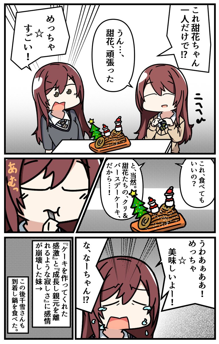 クリスマスプレゼントは、図書カードでした。 なーちゃんの曇り顔より笑顔が好き。そして甜花ちゃんは孫です。大崎姉妹に幸があらんことを。 にへへ・・・・・・(﹡⌒◡⌒﹡) #大崎姉妹生誕祭2021 #大崎甜花生誕祭2021 #大崎甘奈生誕祭2021 #シャニマス