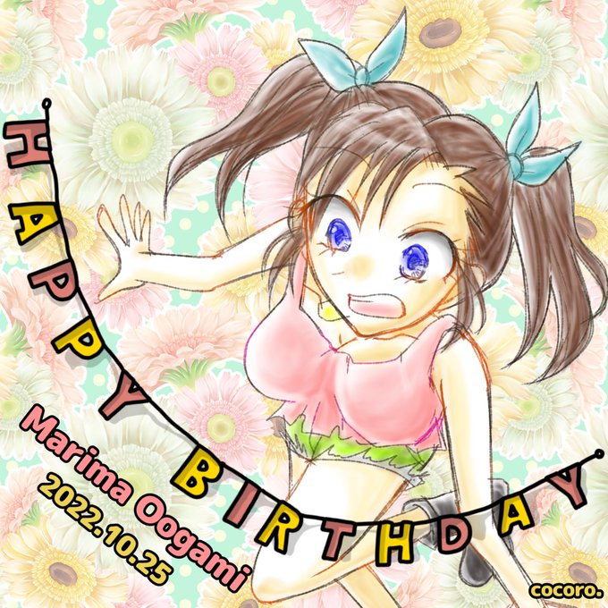 #大神マリナ生誕祭2022 #エアレツゴ万博2022 #カラーパレットからリクエストされた番号のカラーを使って描く マリナちゃんおめでとう〜! 一緒にお祝いさせてください! 7枚目はこころさん(@shockcocoro )の15番「君の頬に恋」 かわいいポーズにしてみました〜!改めておめでとう〜!