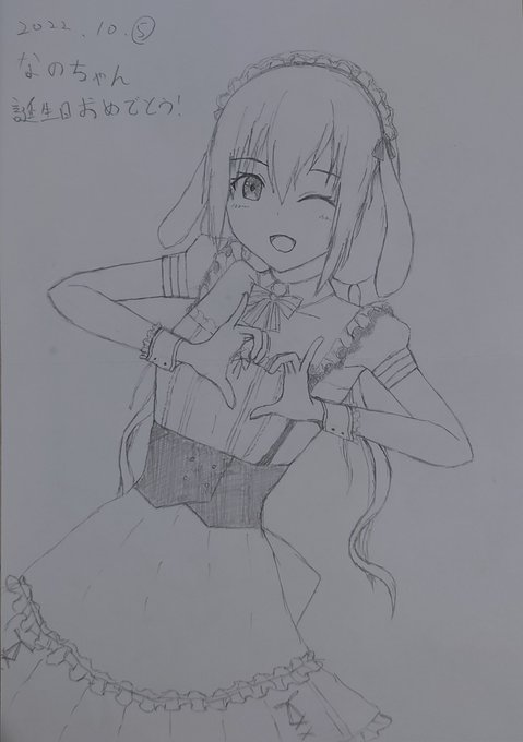 なのちゃんお誕生日おめでとう💫💙 デビューから3回目の誕生日なので指で3を表しました。これまで大きな足跡を残してきてすごい。そしてこれからも活躍を願ってます。 #天使のアトリエ #天使なの生誕祭2022