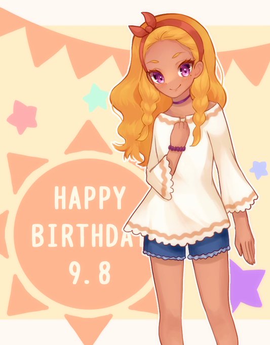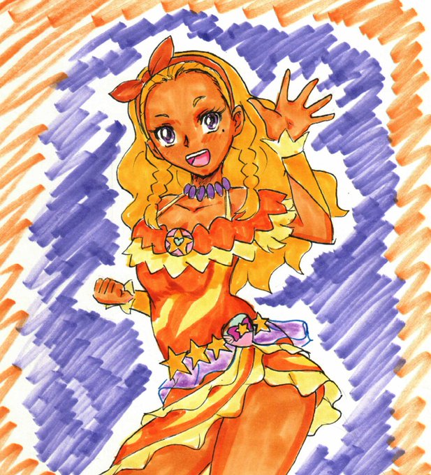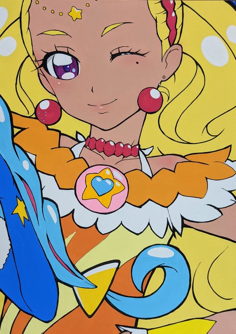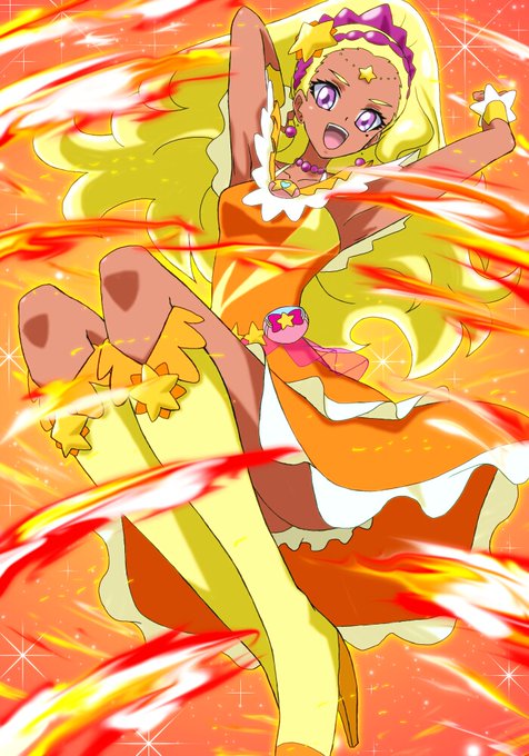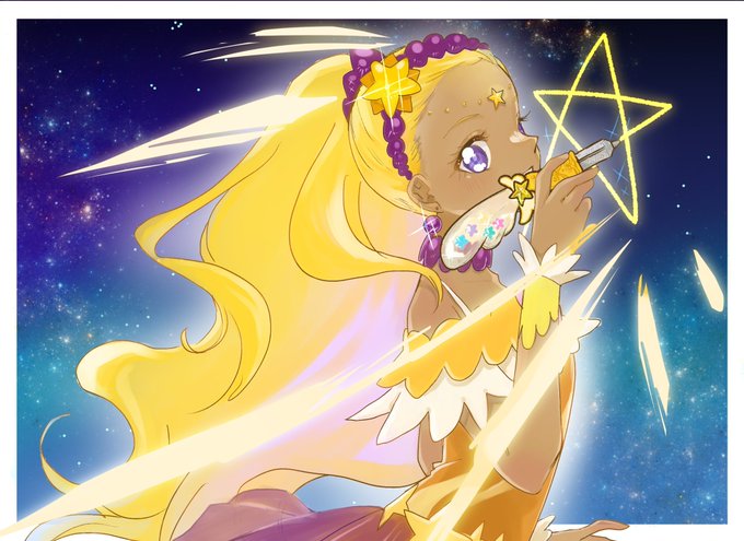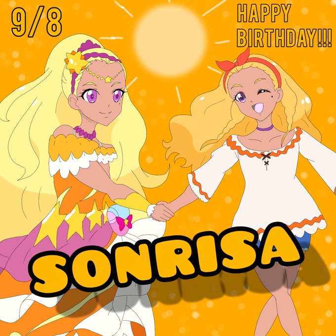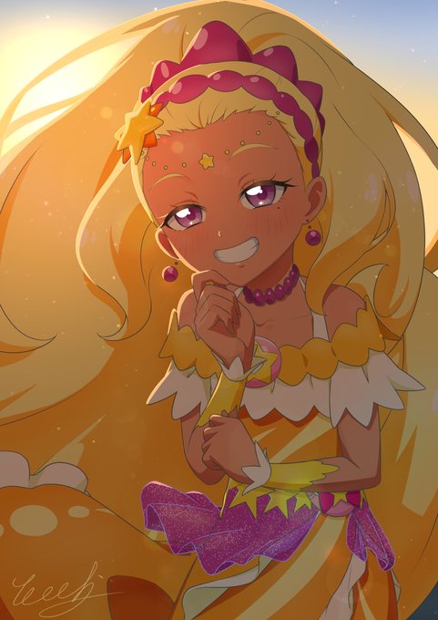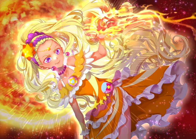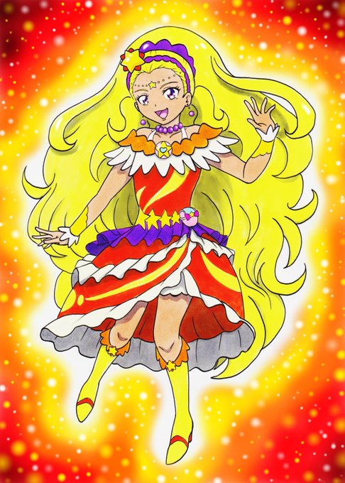 ♪今日も誰かの誕生日、今日も誰かの誕生〜日〜。デビルマンEDで。ソレイユはバックが少ないから耳飾りにキラキラつけた。誕生日絵どころかパルフェもホイップもまだラフさえ出来てにゃい…😱 #キュアソレイユ生誕祭2022 #天宮えれな生誕祭2022