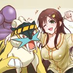 誕生日おめでとう! 酔った勢いで伝説を捕まえた姫川友紀と、野球観戦にハマったライコウです。 #姫川友紀 #姫川友紀生誕祭2022 #姫川友紀誕生祭2022 #ライコウ #ポケモンイラスト