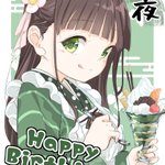 甘兎庵で働く優しくておしとやかな千夜ちゃん、メニューのおしながきの中二感溢れるネーミングセンスやにっこり微笑んだ笑顔の裏にはちょっと腹黒い一面もあるけどこれからもシャロちゃんやココアちゃん達と仲良くしてね! #宇治松千夜誕生祭2022 #ごちうさ