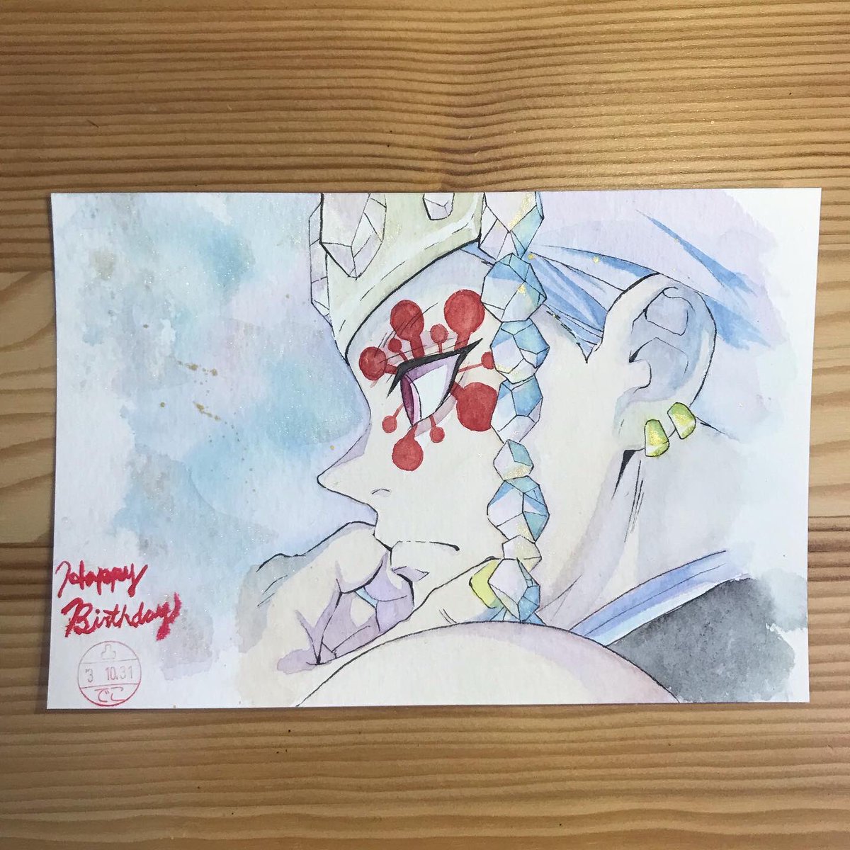 お誕生日ド派手におめでとうございます🎊💎✨✨✨ ド派手にデコったつもりですが、派手さを間違えていると言われてしまいそうですが…💦 遊郭編めちゃくちゃ楽しみです!! カッコいいんだろうなぁ💕 #鬼滅の刃 #鬼滅の刃イラスト #宇髄天元誕生祭2021 #宇髄天元生誕祭2021