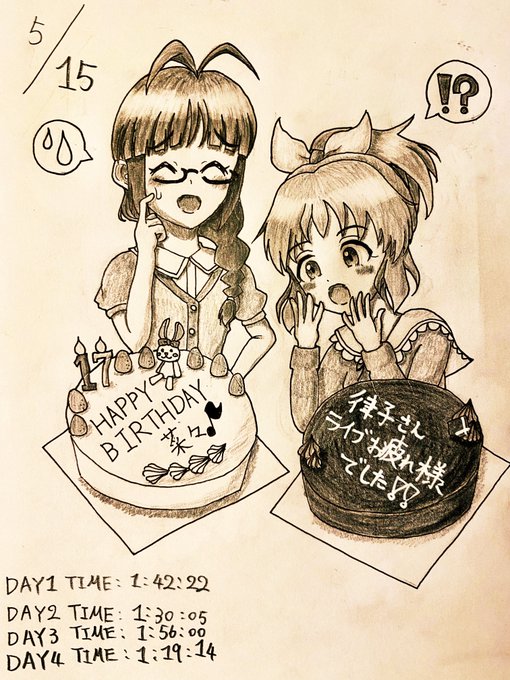 【5月15日の秋月律子さんと安部菜々さん】 律子さんもウサミンも、同じことを考えていたようで、ケーキが2個になってしまいました。 菜々ちゃん、お誕生日おめでとう。 りっちゃん、バンナムフェスお疲れ様でした。 #バンナムフェス2nd_day2 #安部菜々生誕祭2022 #秋月律子 #安部菜々