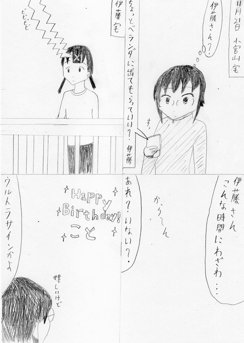 4コマ「ことの誕生日」 去年は確か再掲だったので、今年はキチンと描いてこみさんをお祝い!! ※補足 その昔、伊藤ビームというのが一部ファン界隈の中で流行ったのです #小宮山琴美生誕祭2021 #わたモテ