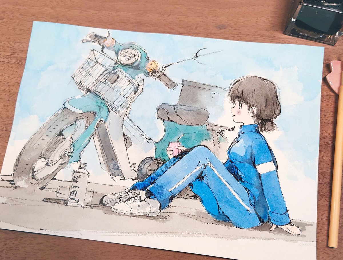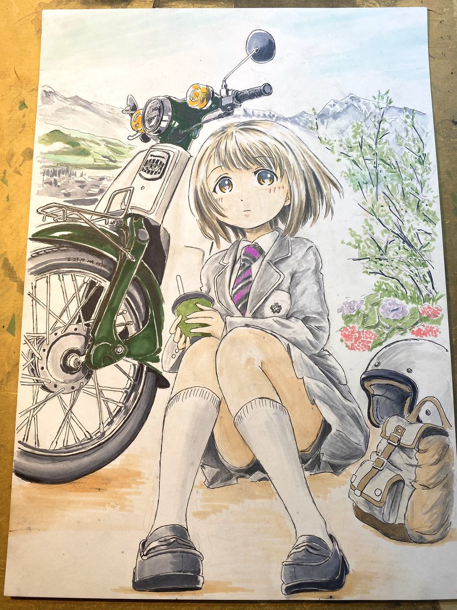 今日もお疲れ様でした~♪*\(๑´▽`๑)/♡*。 #小熊誕生祭2023 #小熊生誕祭2023 #小熊生誕祭 #スーパーカブ #supercub #絵描きさんと繋がりたい #私の絵柄が好みって人にフォローされたい