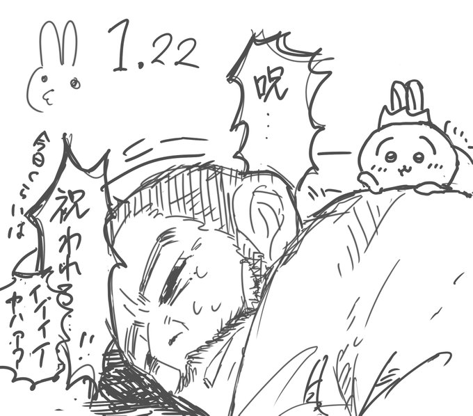 #尾形百之助誕生祭2022 #尾形百之助生誕祭2022 100番煎じと思ったけどちいかわのうさぎも誕生日なのね!おそろっちめでたいね!👏 ヒャクチャンに幸あれ! (左上のは脊髄反射でうさぎ書いたら謎命を作り出してしまって逆に笑えたので置いときます なにこれ)