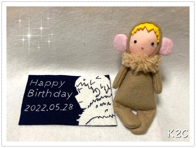 #尾白猿夫誕生祭2022 🐒 お誕生日おめでとう🎉🎂 おたおめするの今年で何回目? 今年はハピバカード風と概念な猿ぬいでお祝い🥂これからも応援します☺️ (画像3枚目は今までに作ったフェルト尾白くんたちの一部) #ヒロアカ手芸部 #かくにフェルト