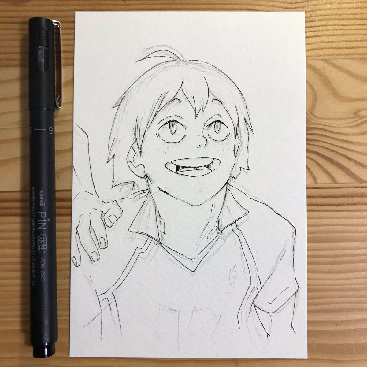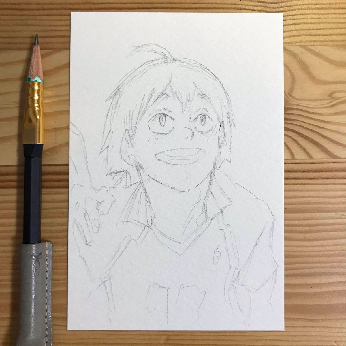 #凸がき #スケッチブック #模写修行 #ハイキュー #ハイキューイラスト #山口忠 #山口忠誕生祭2021 #山口忠生誕祭2021 山口おめでとう㊗️ 排球極!の表紙、可愛くないです?? 手だけ描いたから心霊写真みたいになったけどw🤣 見つめる先には...ツッキーじゃないよ(笑)